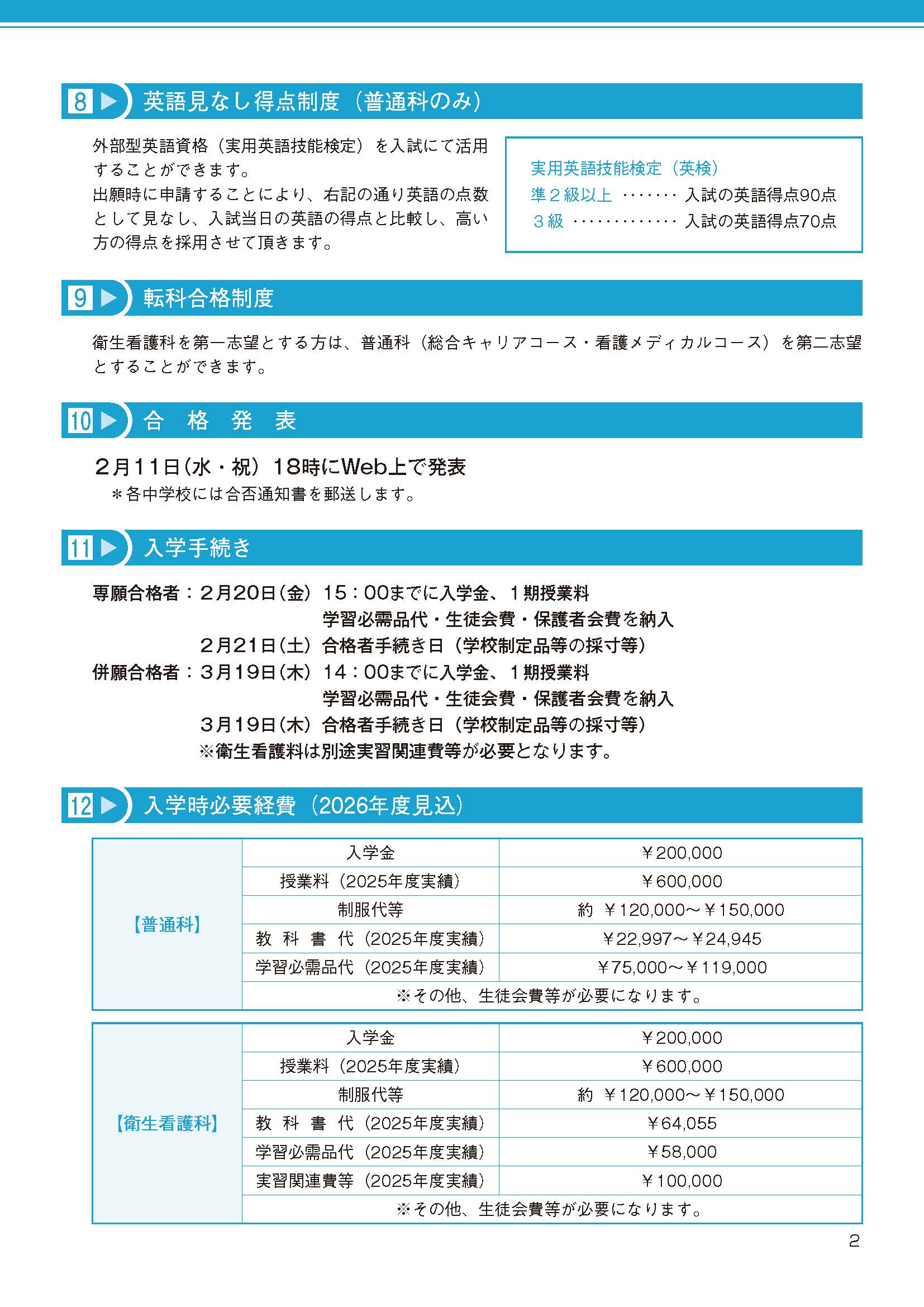 令和8(2026)年度 募集要項・学費等